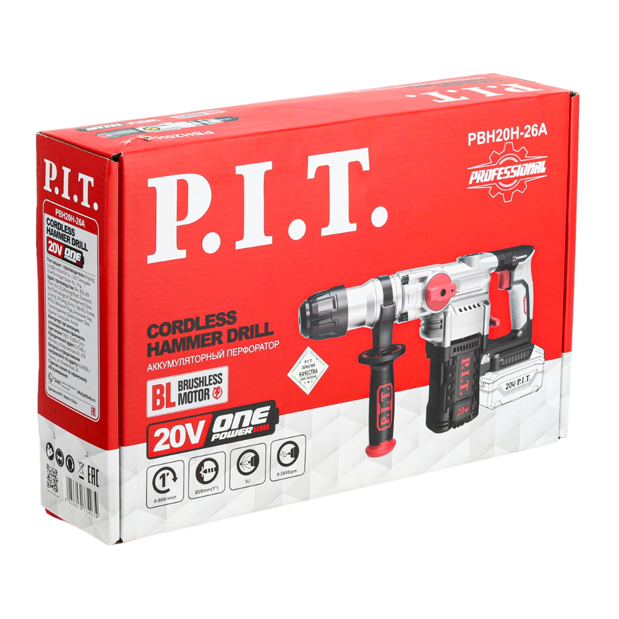 Трёхрежимный аккумуляторный перфоратор SDS-Plus PBH20H-26A с вертикальным расположением двигателя входит в семейство инструментов единой аккумуляторной системы OnePower20V.