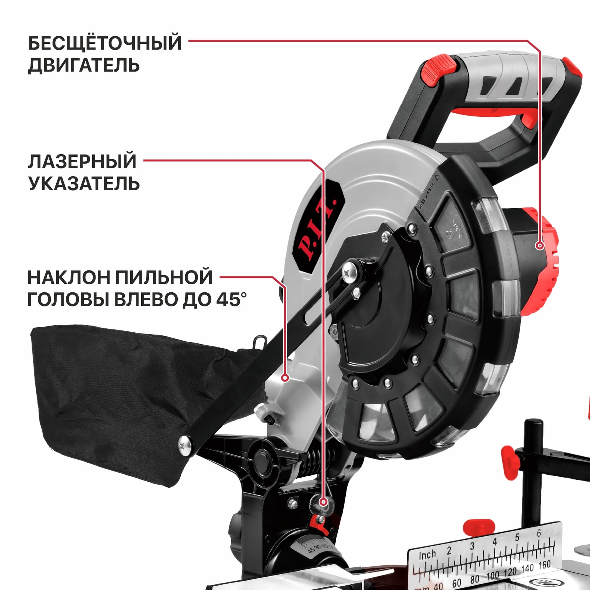 ● Наклон пильной головы только влево на угол до 45°