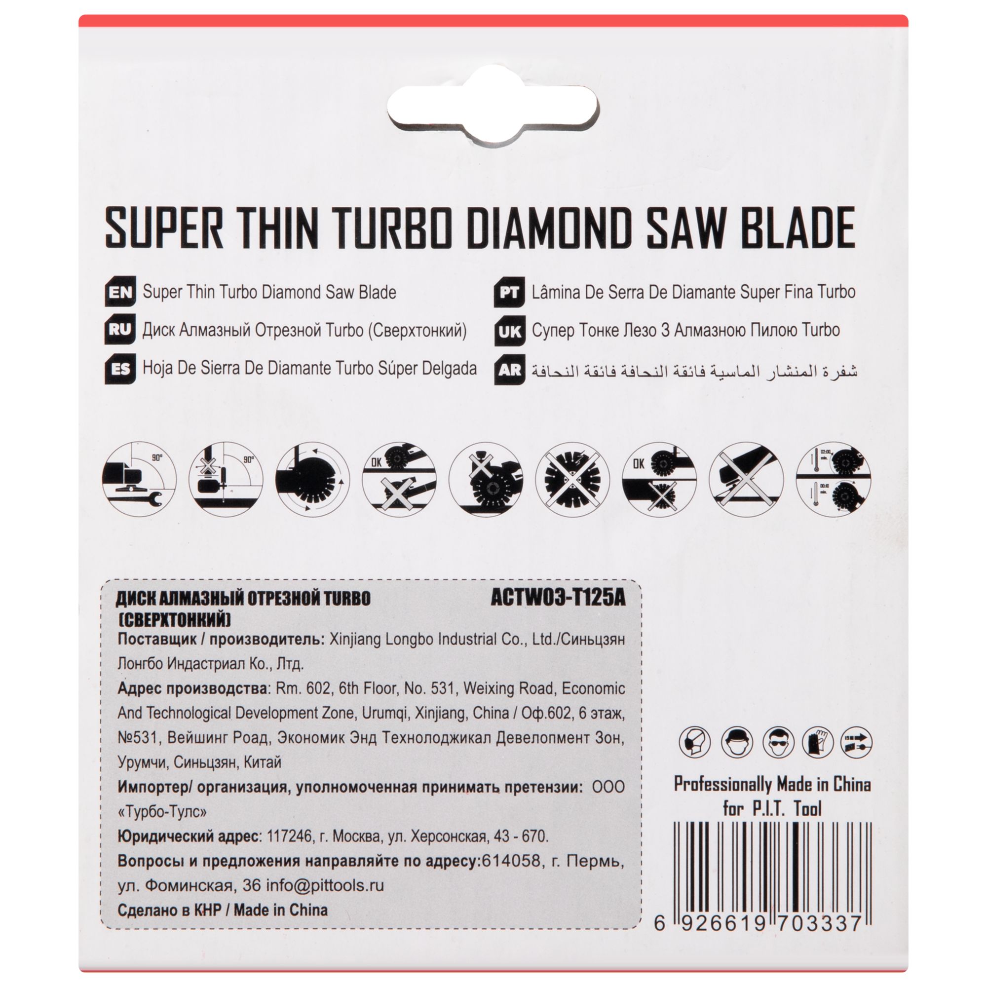 Диск алмазный Turbo ACTW03-T125A - предназначен для использования с угловыми шлифовальными машинами и может применяется для резки бетона, камня, керамогранита, кирпича.