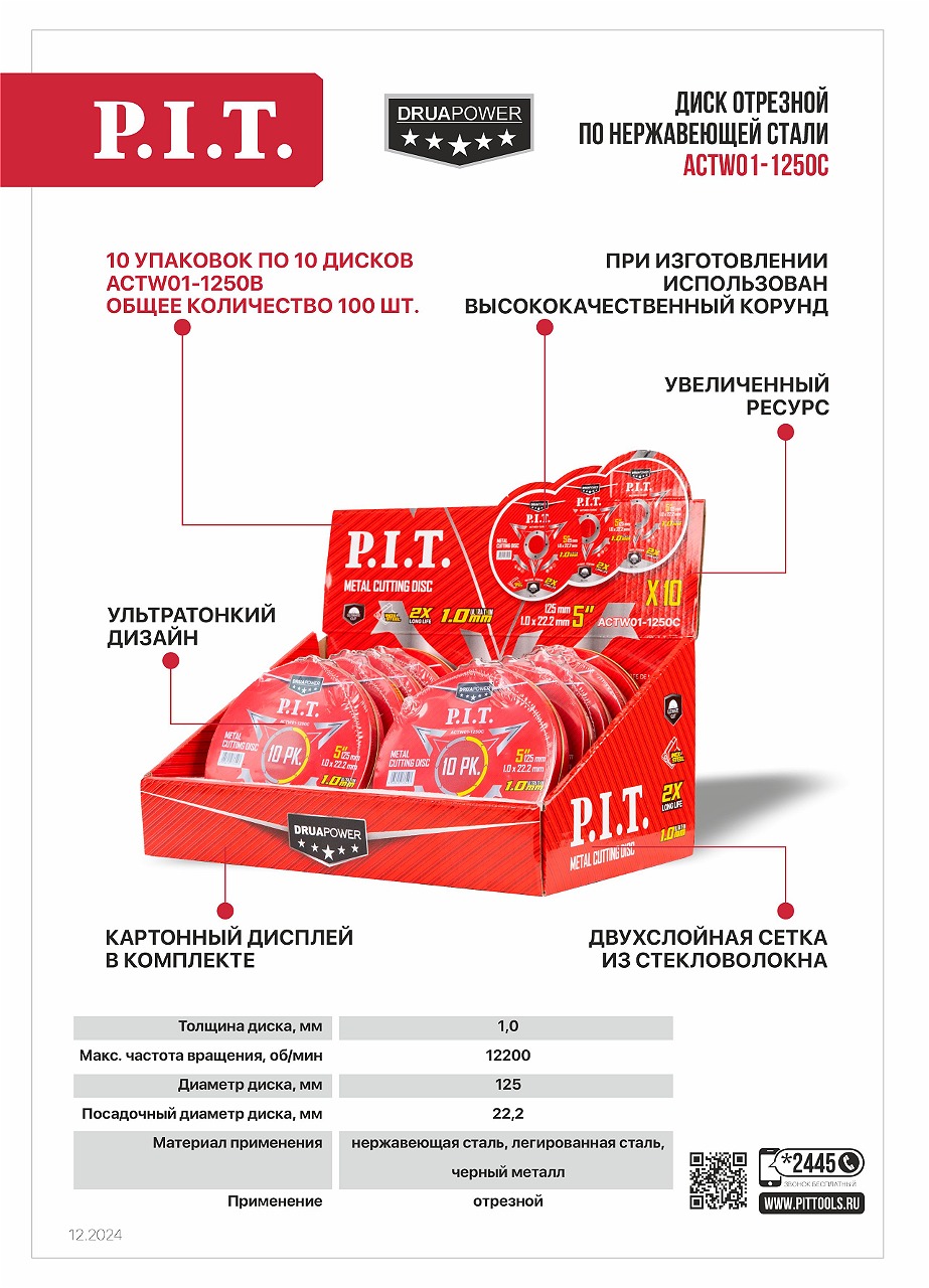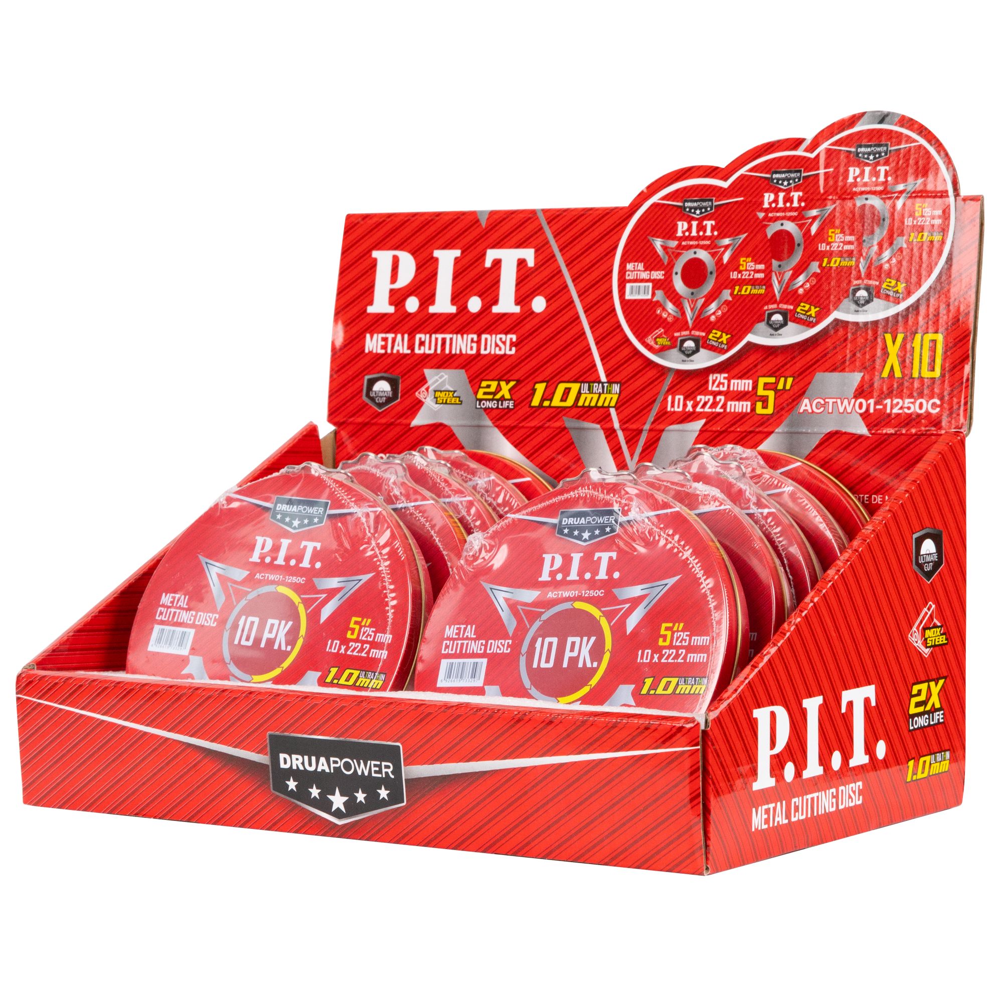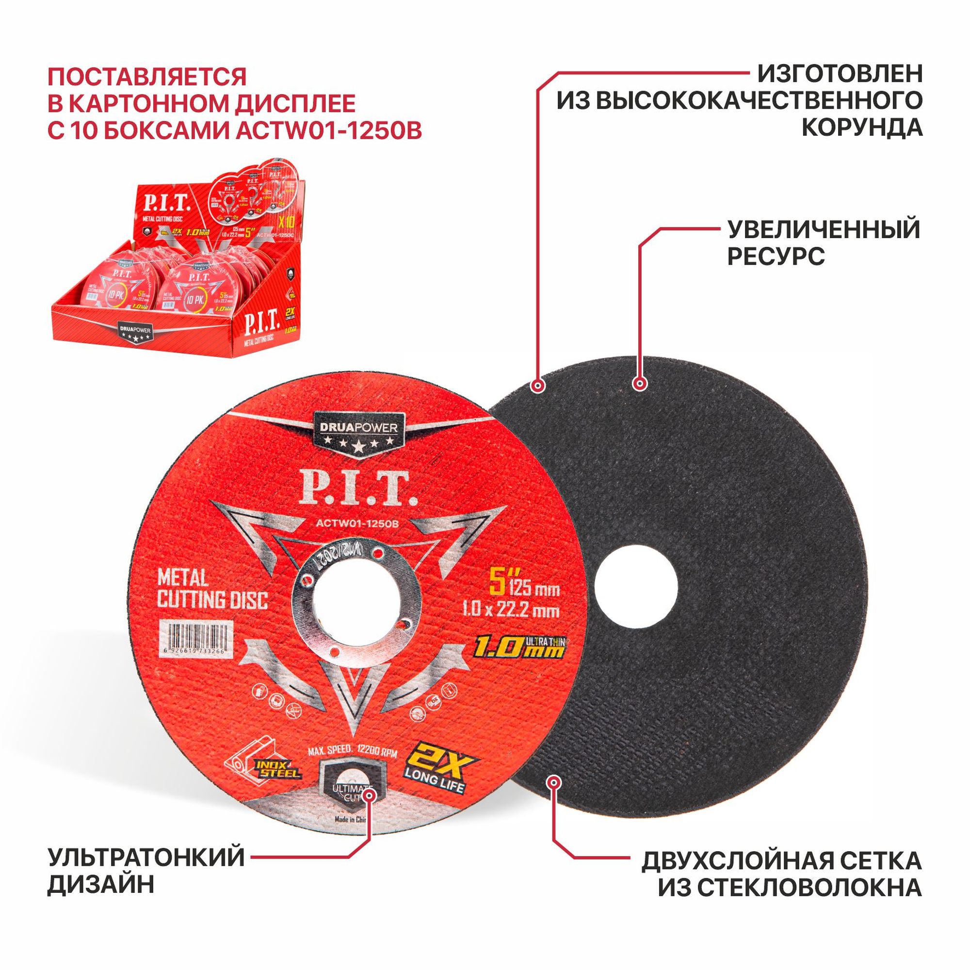 Диск отрезной абразивный по металлу ACTW01-1250C (10 упаковок), картонный дисплей для хранения