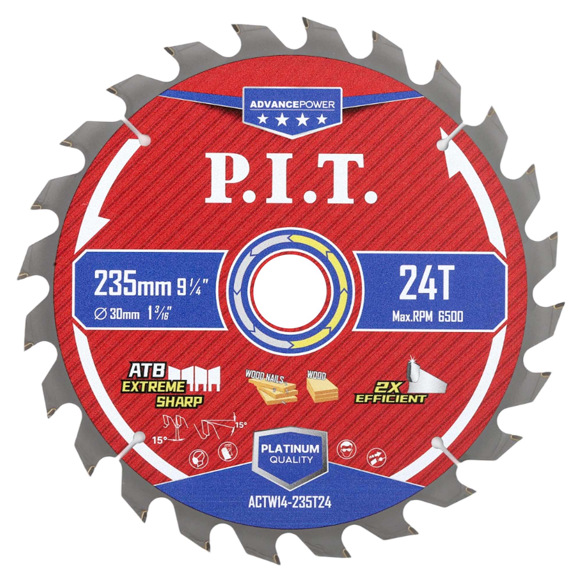 Диск пильный с твердосплавными напайками по дереву для циркулярных и торцовочных пил ACTW14-235T24 отличный вариант для распила древесины, досок, многослойных плит, древесностружечных плит (ДСП, OSB, фанеры и т.д.).