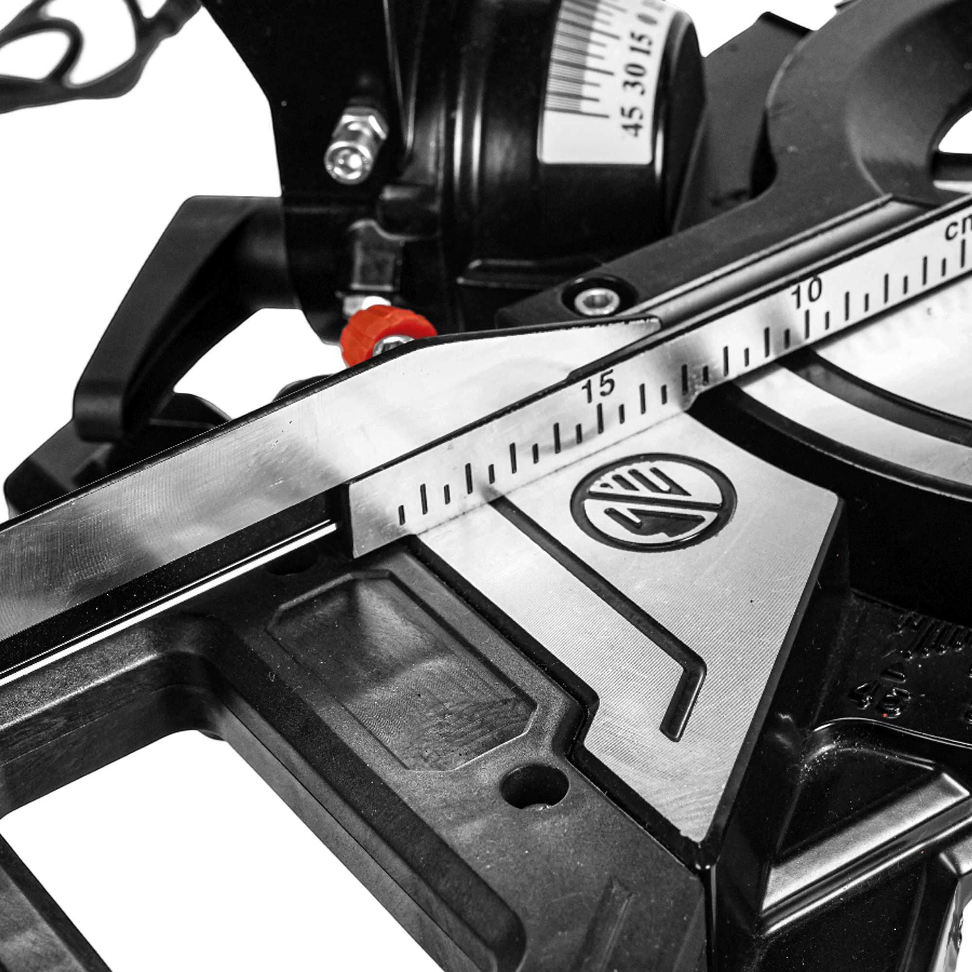 Две параллельные скользящие направляющие обеспечивают возможность поперечного перемещения пильной головы и позволяют работать с широкими заготовками, а в сочетании с ограничителем глубины пропила - распиловку "в полдерева".