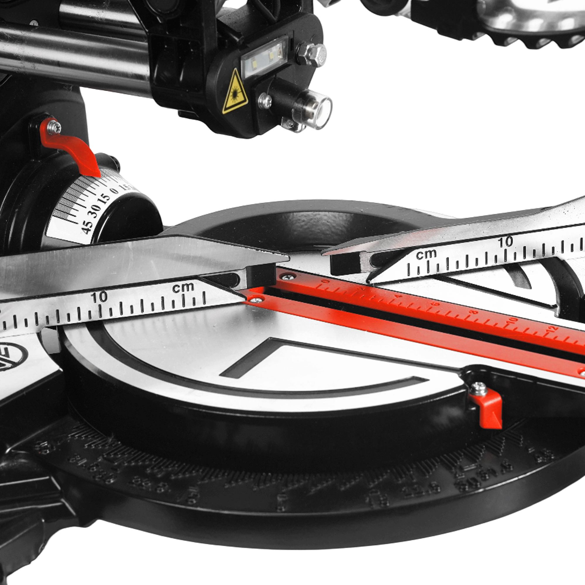 ● Поворотная станина и наклон пильной головы влево и вправо для выполнения косых резов