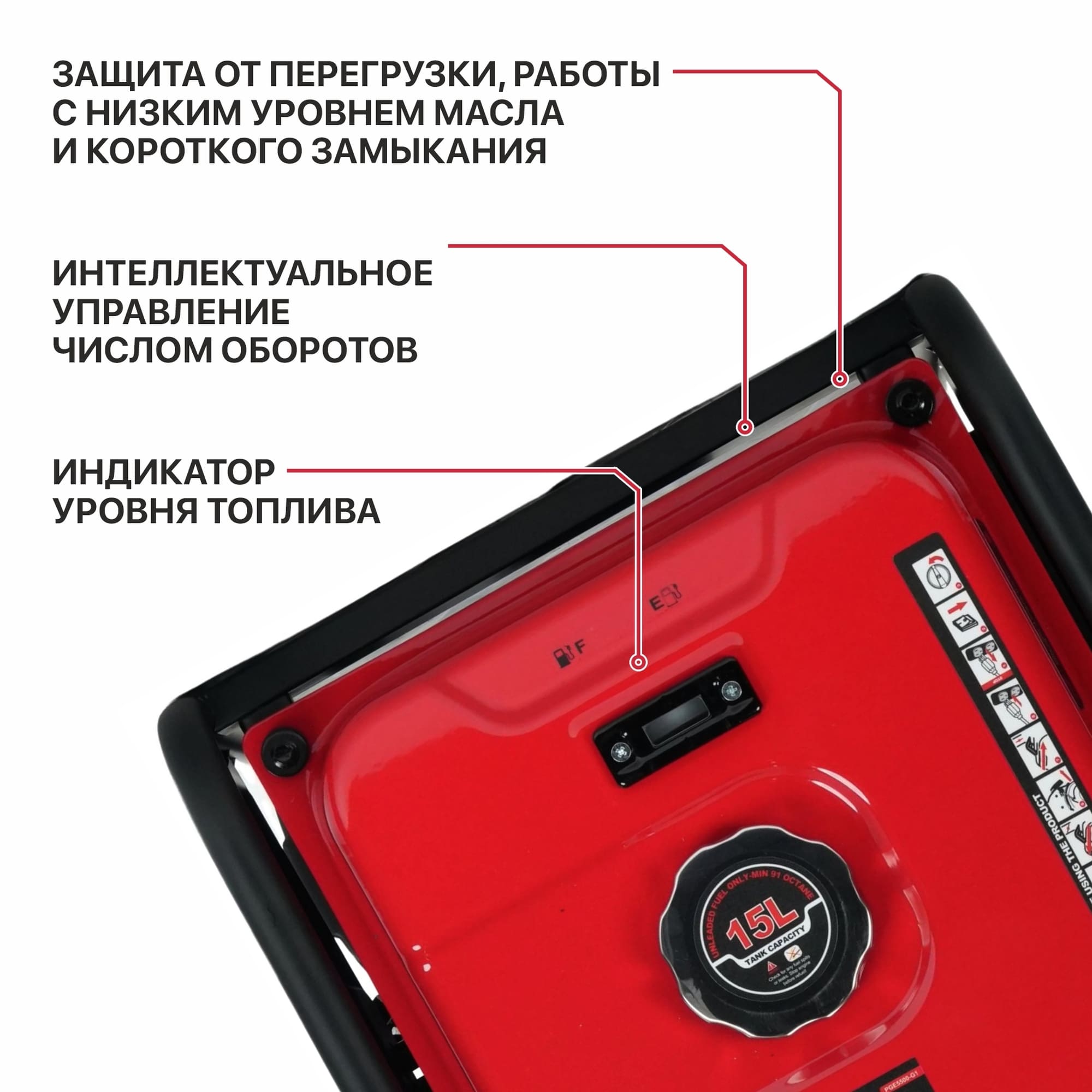 ● Световая индикация перегрузки, низкого уровня масла и параметров работы генератора.