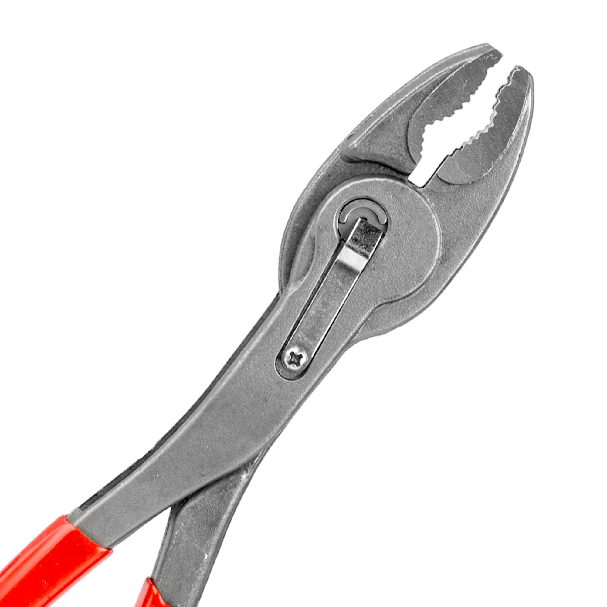 V-образные губки с четко выраженными зубцами решают проблему зажима изношенных и ржавых деталей, обеспечивая надежное соединение и удобство в работе.