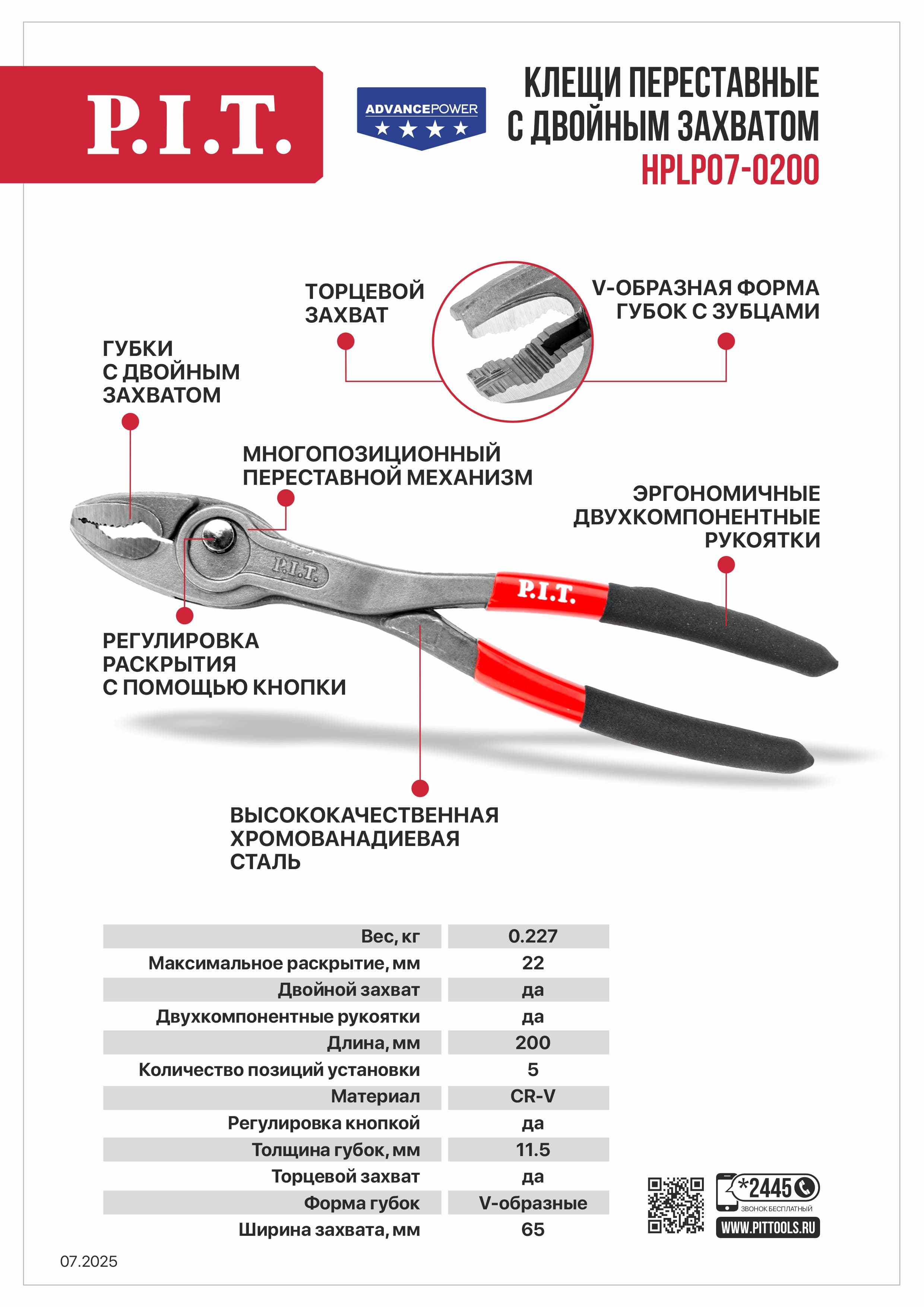 Клещи переставные HPLP07-0200 серии ADVANCE применяются в самых разнообразных сферах: при ремонтных, строительных, сантехнических, демонтажных и других работах.