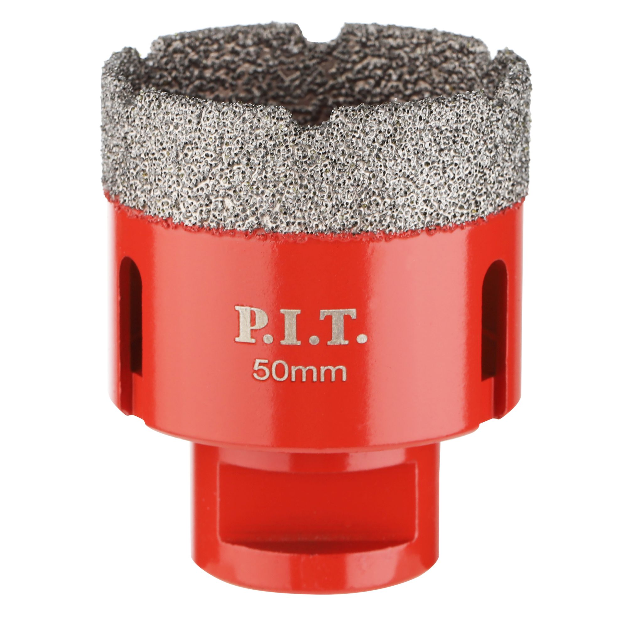 Алмазные коронки P.I.T. AMAS18 серии DRUA предназначены для сверления отверстий в керамограните, натуральном и искусственном камне, керамике, кирпиче и мраморе. Благодаря широкой алмазной кромке, выполненной по технологии вакуумного спекания алмазов, коронка имеет высокий ресурс и скорость сверления отверстий в материале. Хвостовик с внутренней резьбой M14 позволяет использовать коронки с угловыми шлифовальными машинами. Возможно использование коронок как для сухого, так и для мокрого сверления. Использование охлаждающей жидкости позволяет увеличить срок службы коронки и скорость работы.