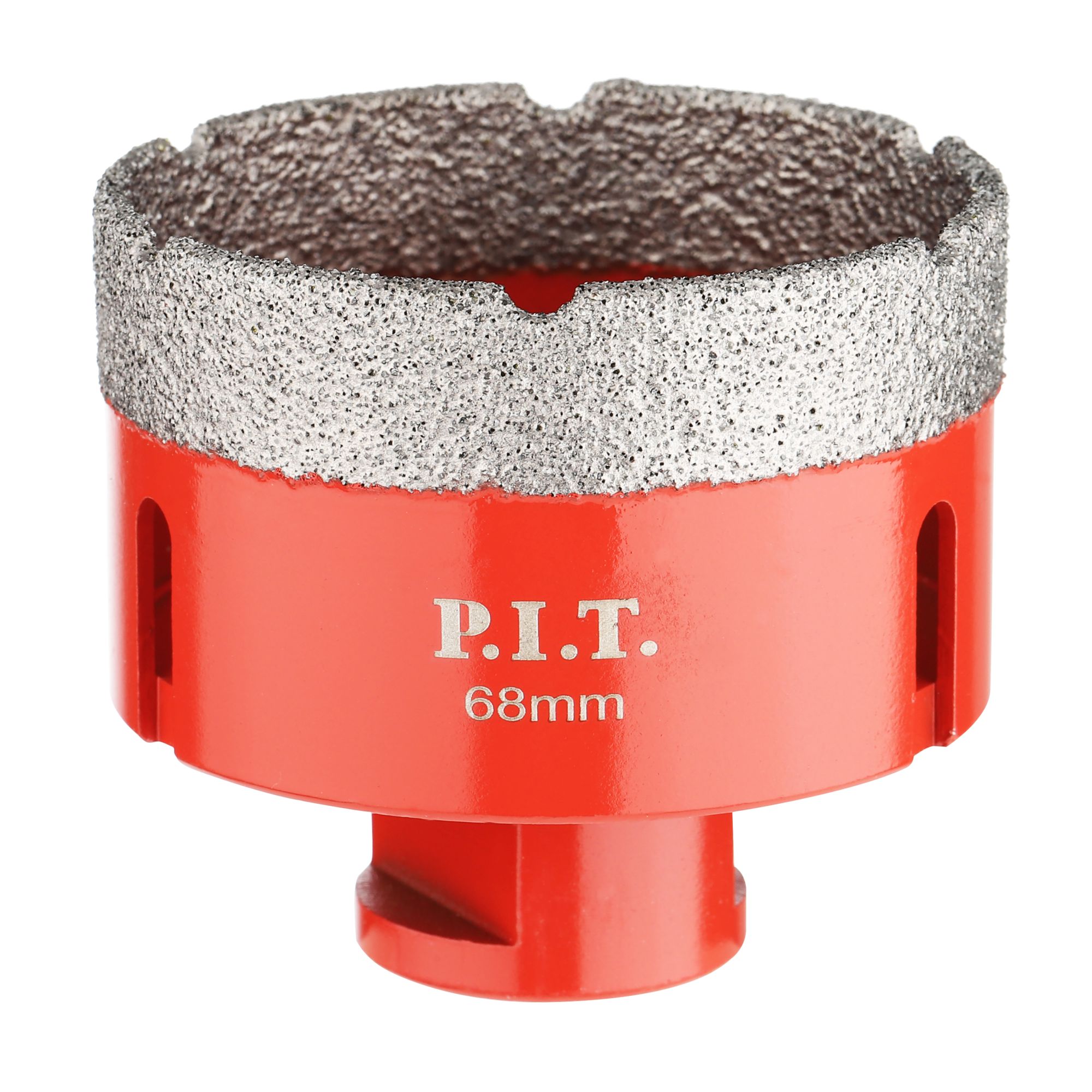 Алмазные коронки P.I.T. AMAS18 серии DRUA предназначены для сверления отверстий в керамограните, натуральном и искусственном камне, керамике, кирпиче и мраморе. Благодаря широкой алмазной кромке, выполненной по технологии вакуумного спекания алмазов, коронка имеет высокий ресурс и скорость сверления отверстий в материале. Хвостовик с внутренней резьбой M14 позволяет использовать коронки с угловыми шлифовальными машинами. Возможно использование коронок как для сухого, так и для мокрого сверления. Использование охлаждающей жидкости позволяет увеличить срок службы коронки и скорость работы.