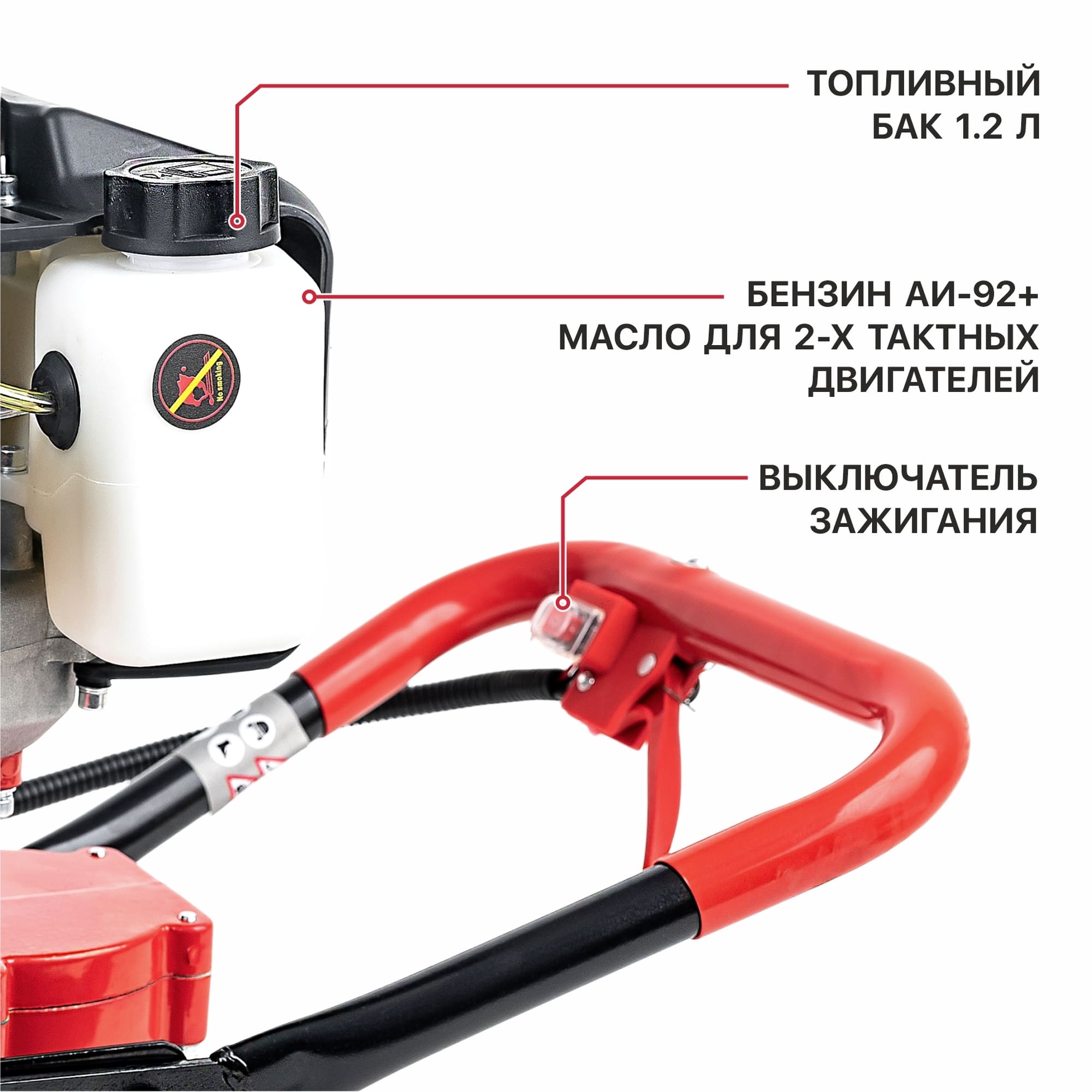 - Удобное расположение топливного бака - легкое обслуживание инструмента