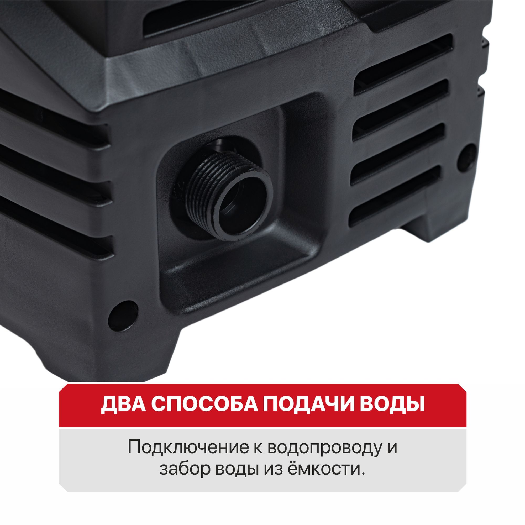 - Два способа забора воды - самовсасывание из любой емкости или подключение к водопроводу