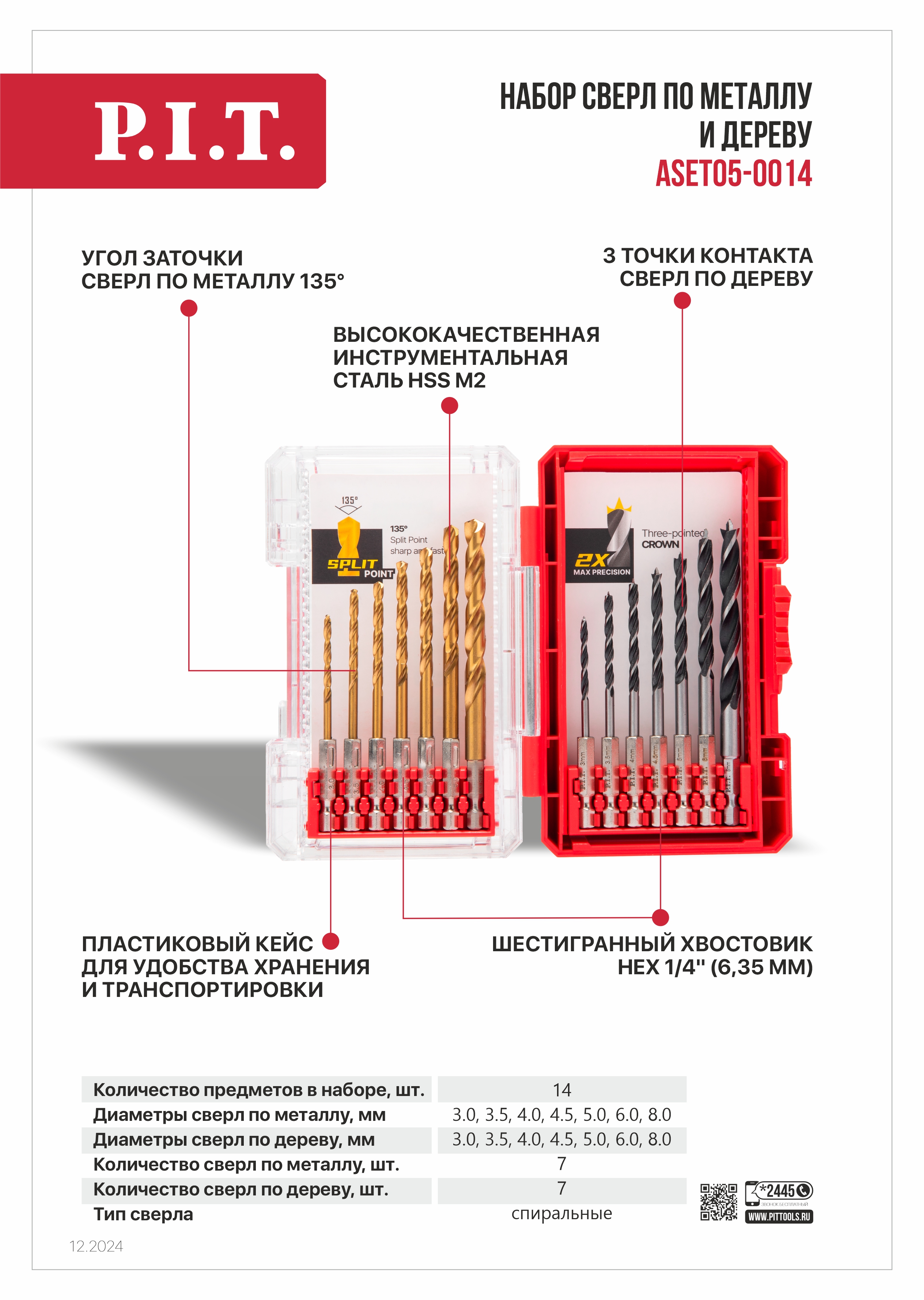 Сверла по дереву (7 шт.), сверла по металлу 7 (шт.), пластиковый кейс