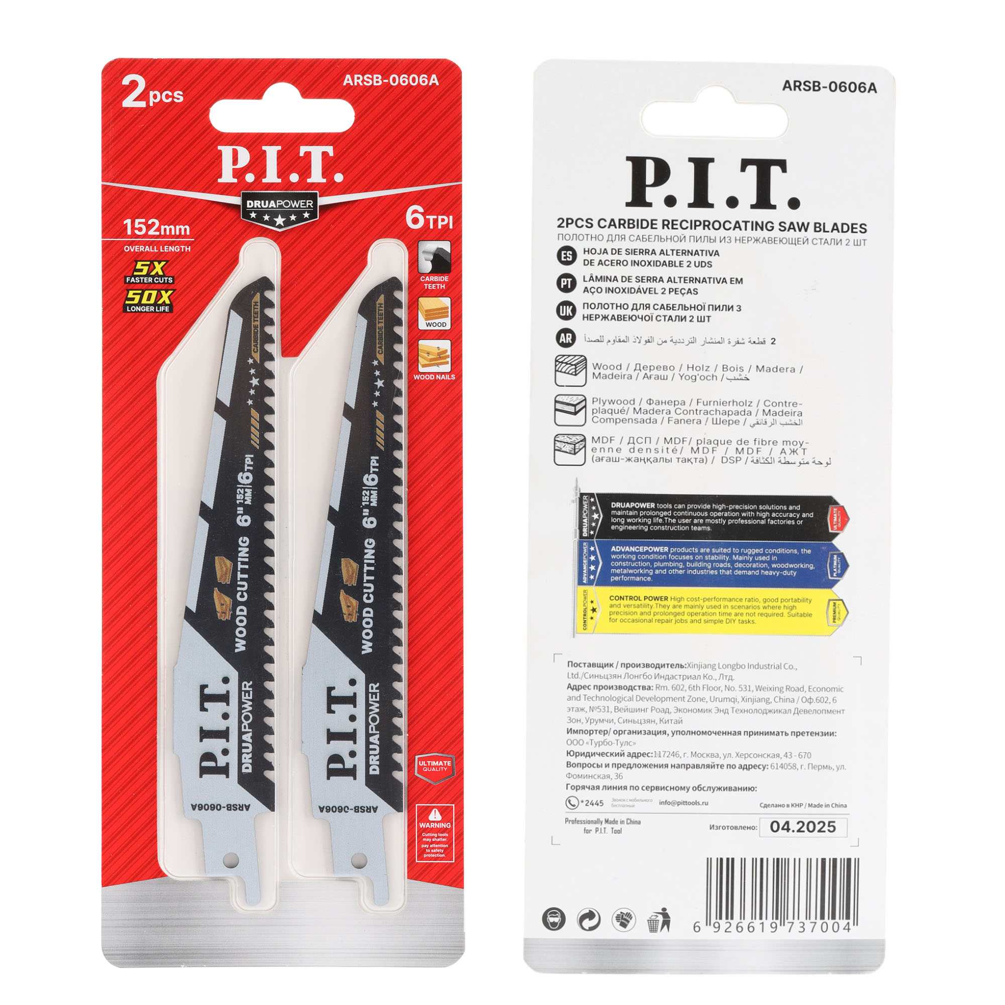 Пильное полотно для сабельных пил ARSB-0606A серии DRUA идеально подходит для работ по различным видам древесины, в том числе б/у древесины с гвоздями.