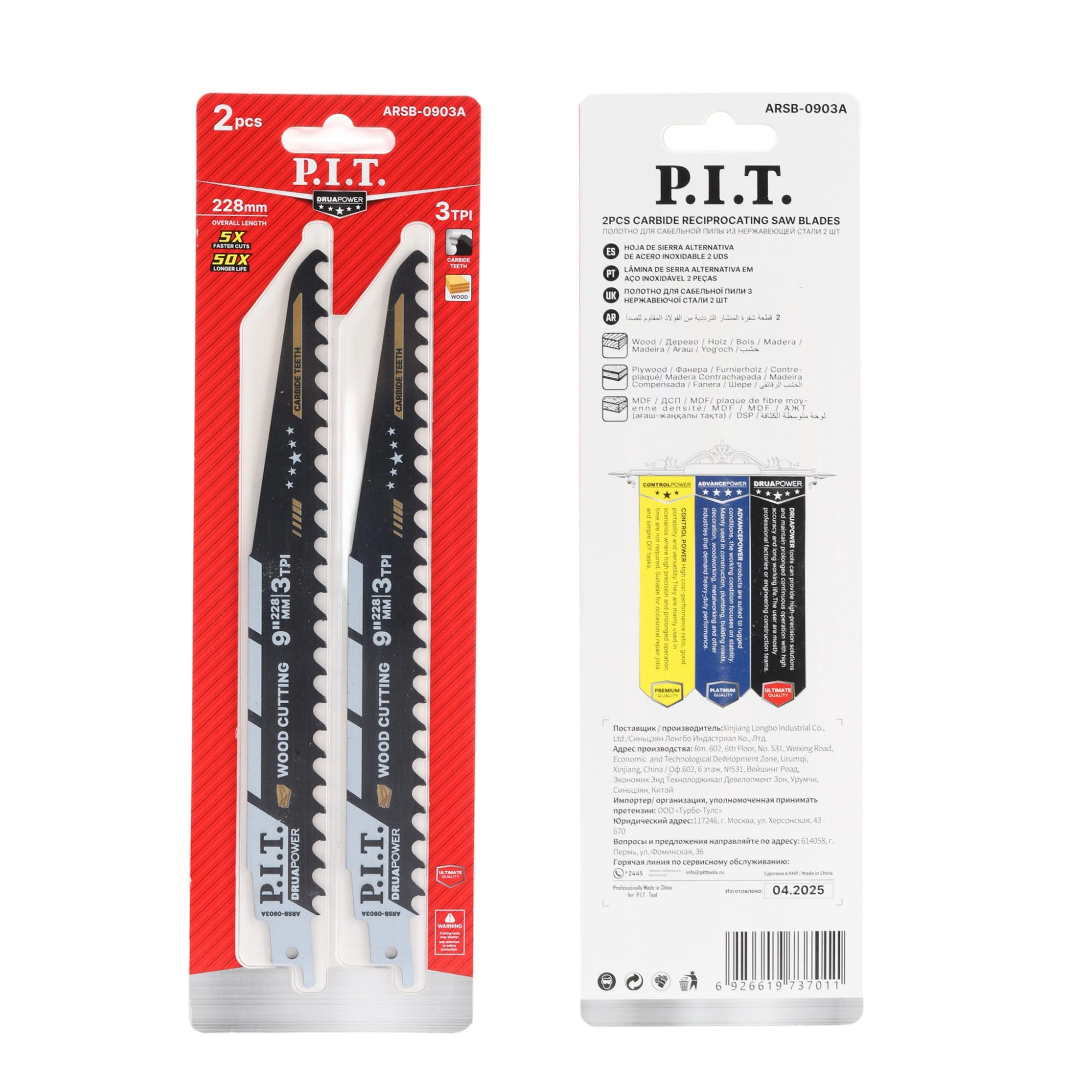 Пильное полотно для сабельных пил ARSB-0903A серии DRUA идеально подходит для работ по различным видам древесины, в том числе твердых пород.