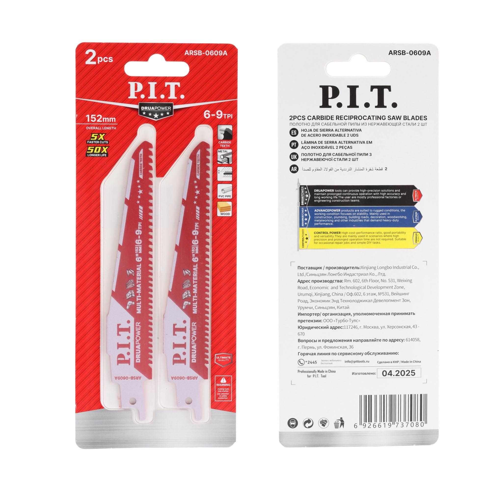 Универсальное пильное полотно для сабельных пил ARSB-0609A серии DRUA идеально подходит для работ по различным материалам - черным и цветным металлам, твердым породам дерева и пластику.