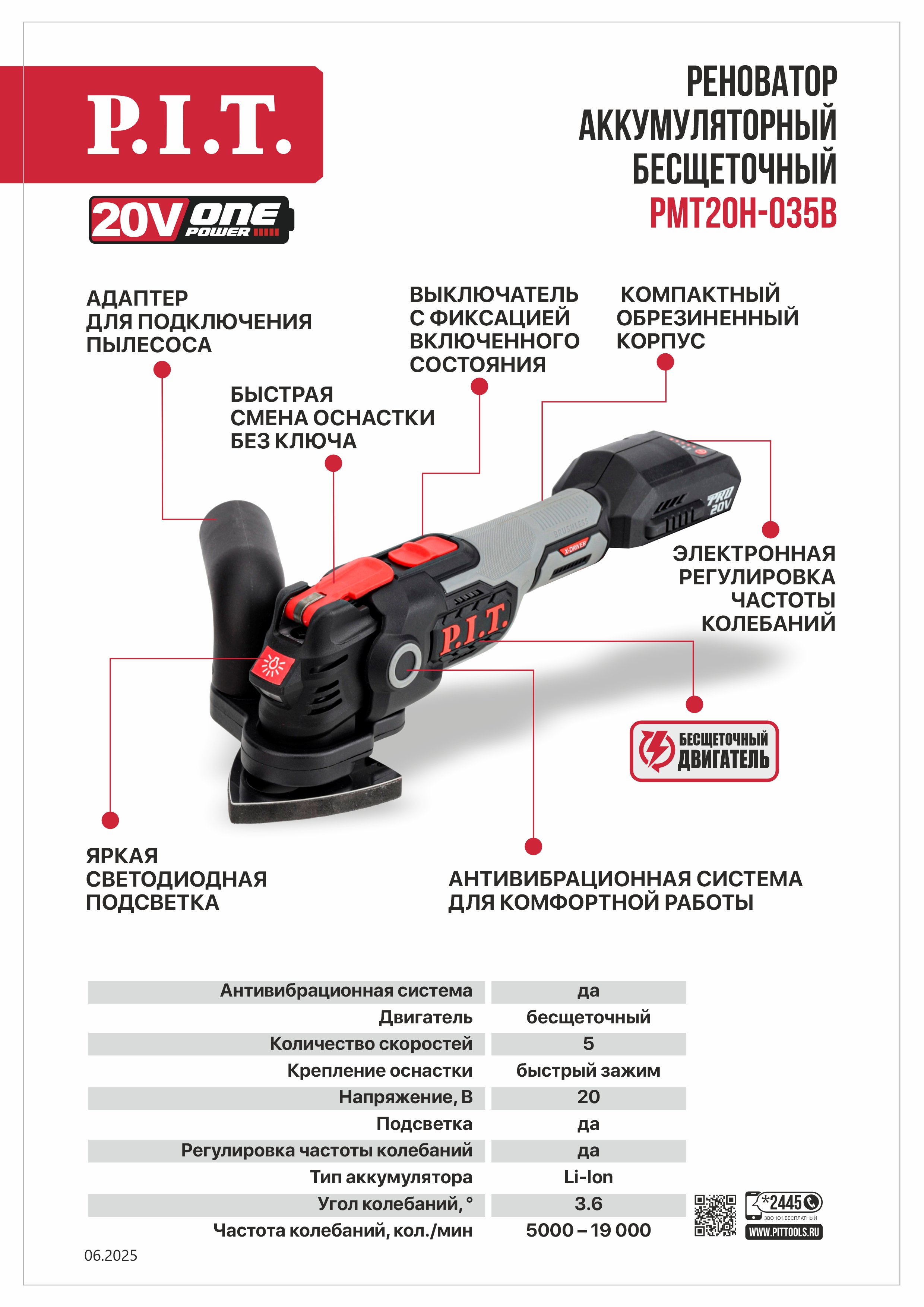 Реноватор аккумуляторный PMT20H-035B входит в семейство инструментов единой аккумуляторной системы OnePower20V. К инструменту подходят все аккумуляторы и зарядные устройства OnePower20V.