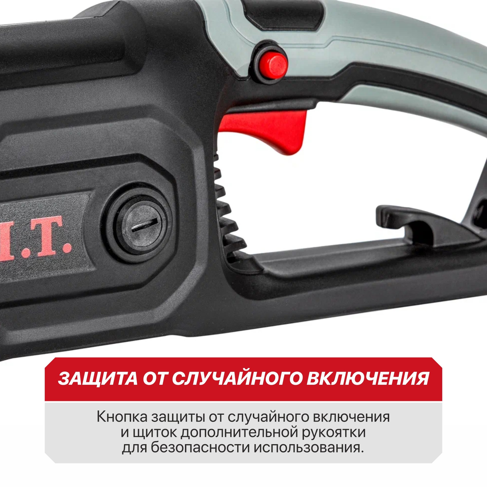 - Клавиша защиты от случайного включения и щиток дополнительной рукоятки для безопасности использования