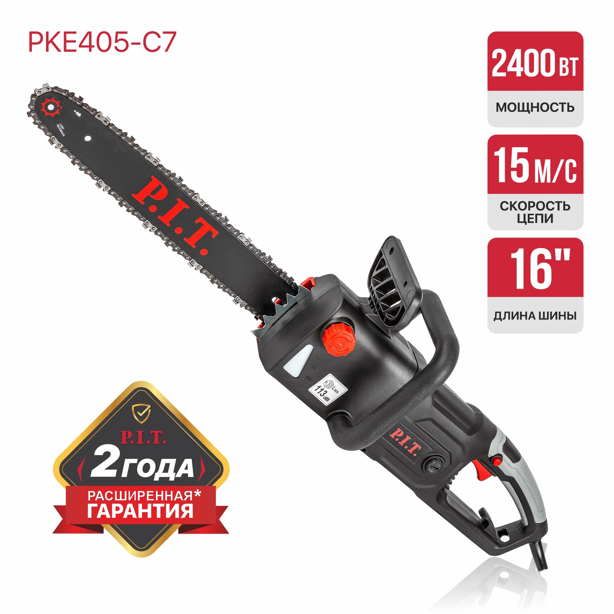 Пила цепная электрическая PKE405-C7 — отличный помощник на даче и дома. Поможет приготовить дрова, спилить ненужные ветки, подрезать материалы для строительства. Оснащена мощным надежным двигателем. При этом не требует особой подготовки к работе: не нужно постоянно заливать топливо, нет проблем с запуском при любой температуре. Обладает уменьшенной вибрацией, нет запаха топлива при работе.