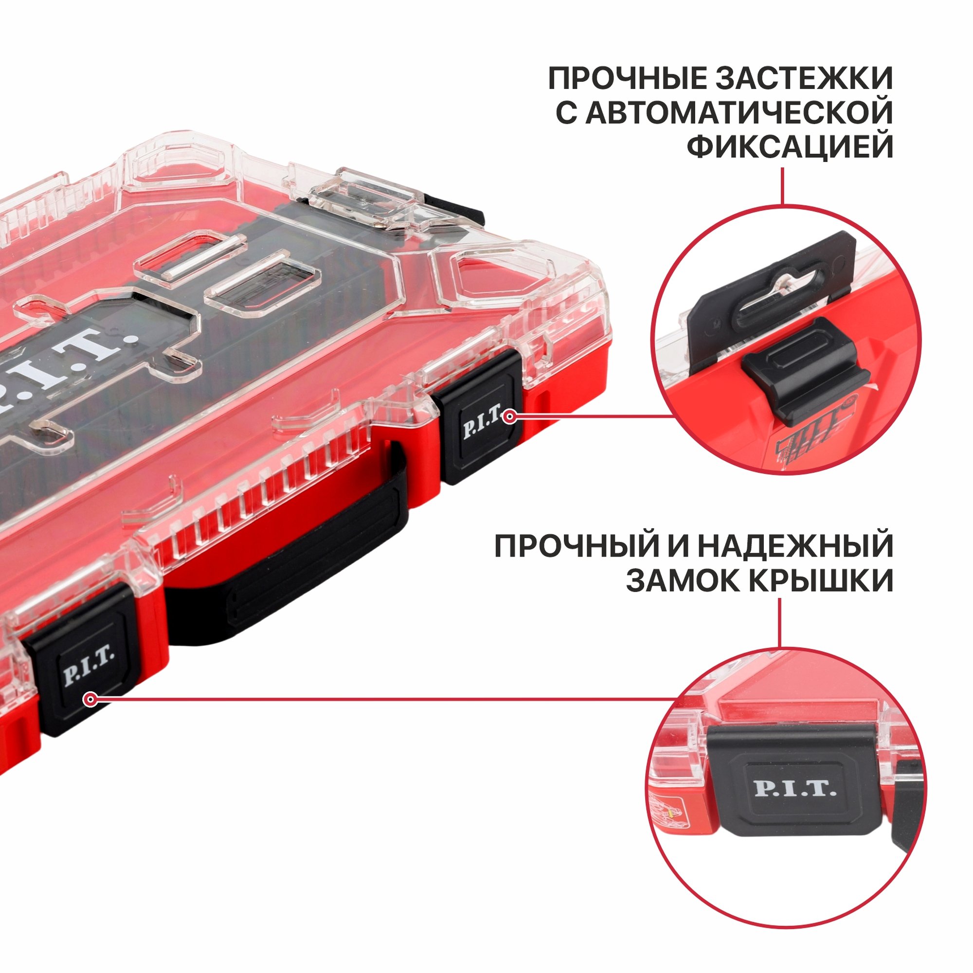 Прочные застежки с автоматической фиксацией позволяют быстро, легко и надежно фиксировать органайзеры системы на ящики или между собой для удобства хранения и транспортировки.