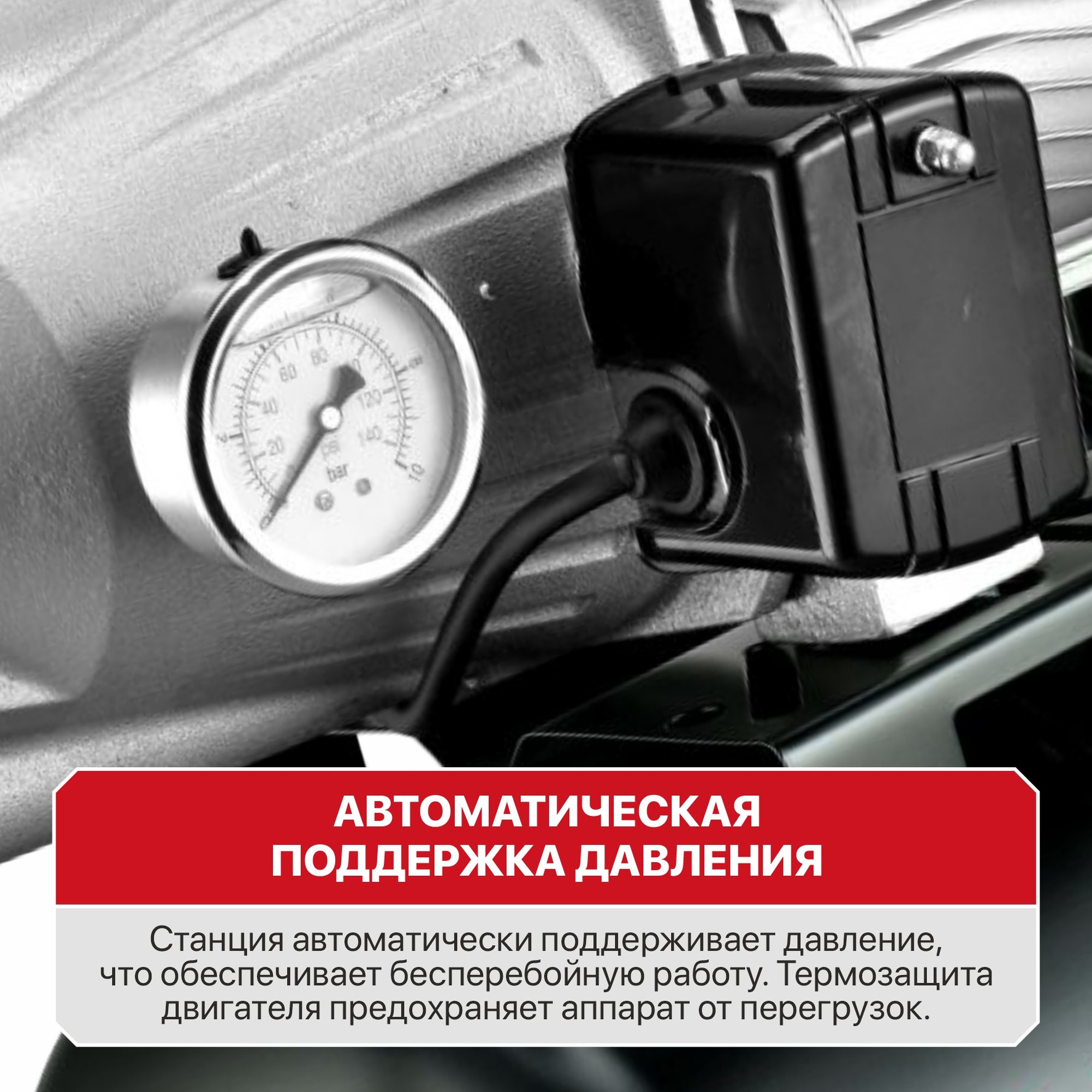 - Станция автоматически поддерживает давление
