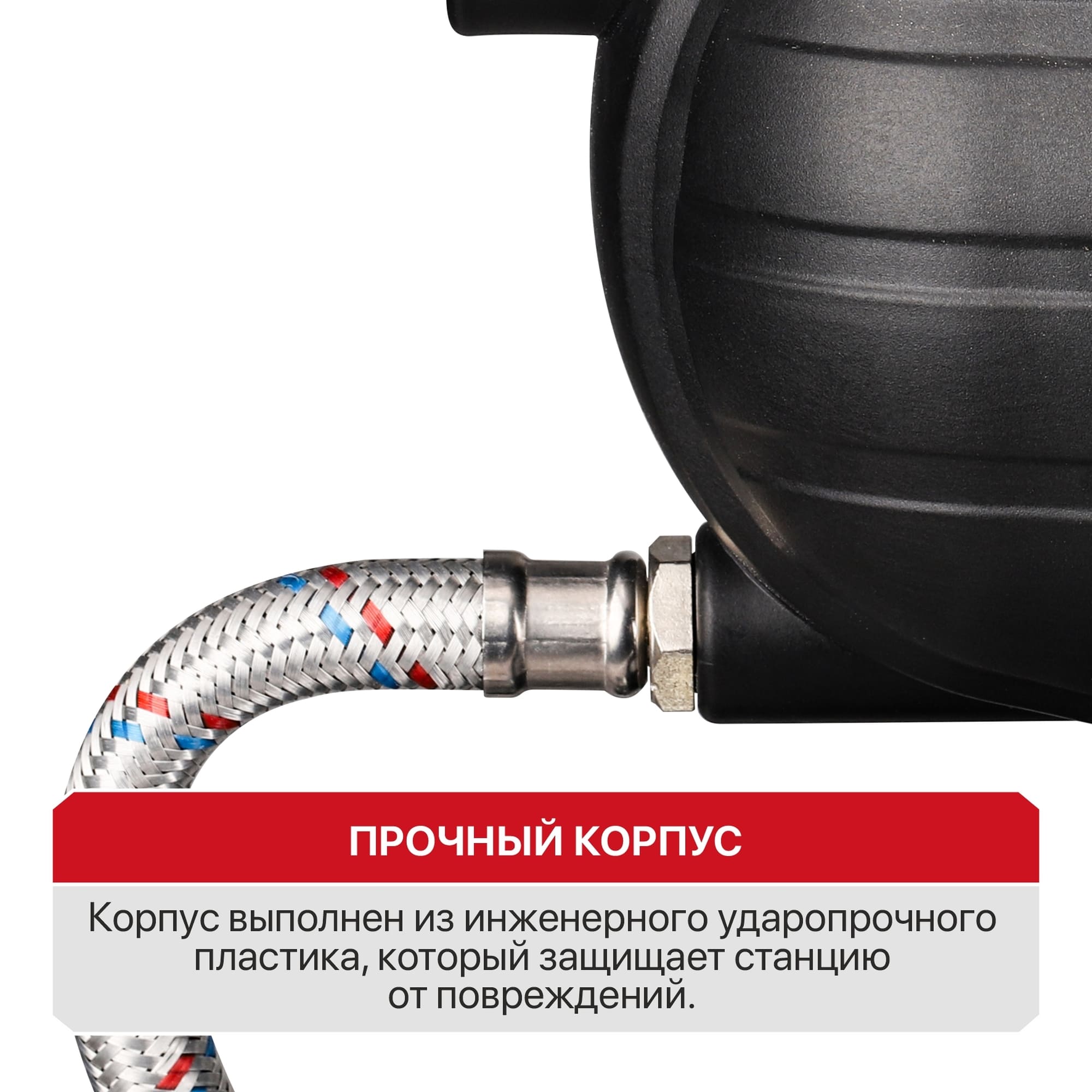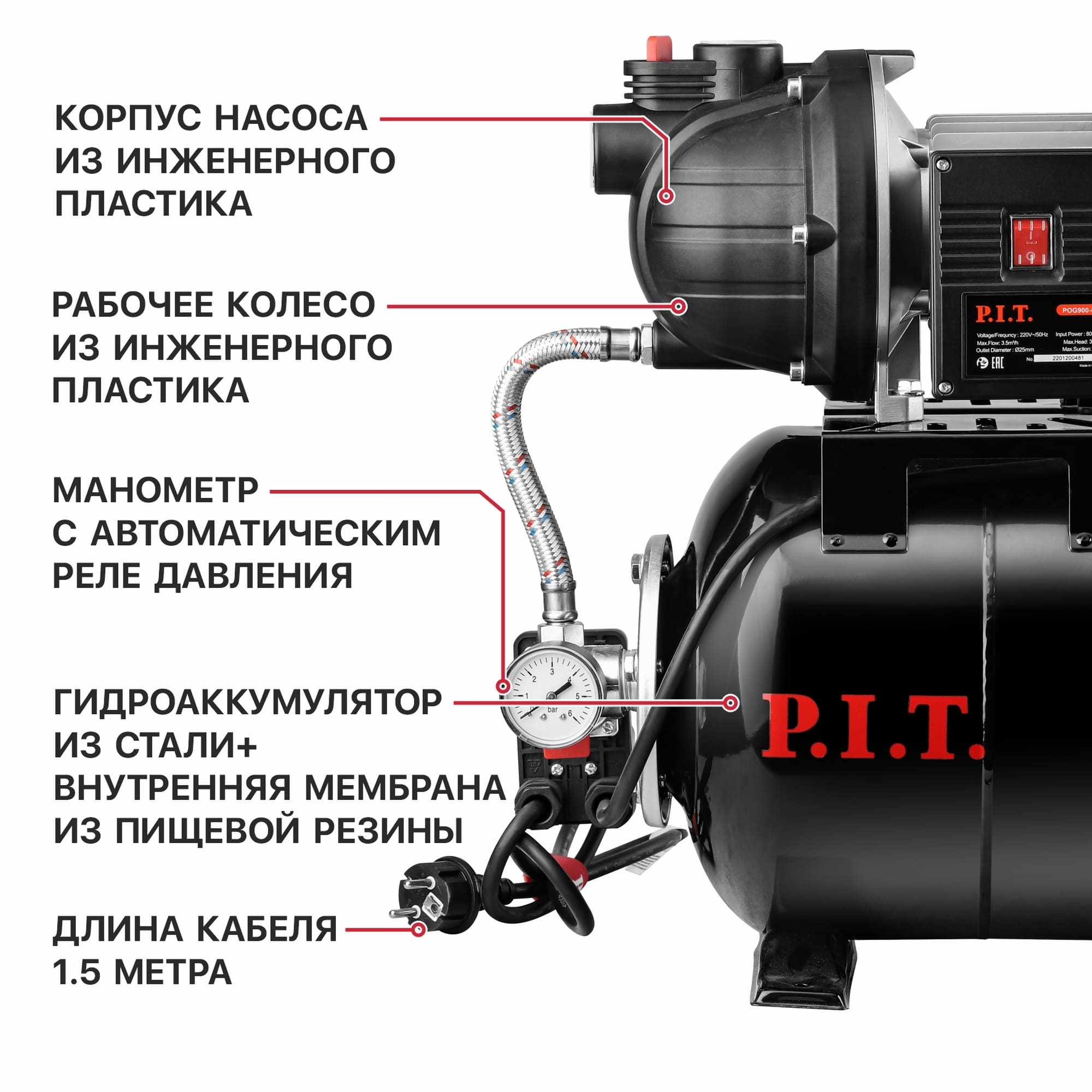 Насосная станция POG900-P2 предназначена водоснабжения домов и загородных участков. Объем резервуара составляет 19 л. Станция автоматически поддерживает давление, что обеспечивает бесперебойную работу. Термозащита двигателя предохраняет аппарат от перегрузок. Мощность двигателя 800 Вт, производительность – 58 л/мин. Корпус выполнен из ударопрочного пластика, который защищает станцию от повреждений. Наличие манометра позволяет своевременно контролировать уровень давления воды на выходе.