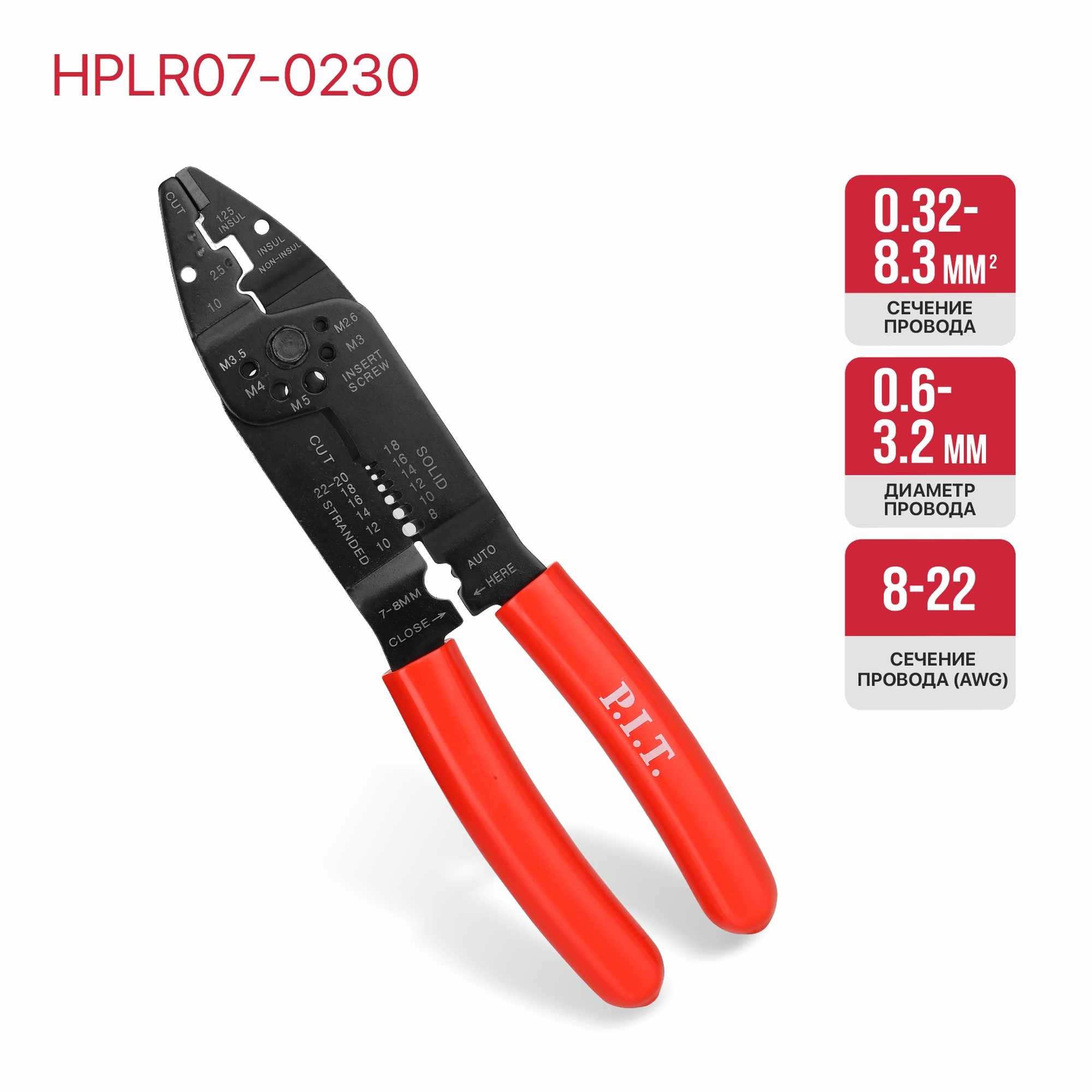 Многофункциональный стриппер HPLR07-0230 - универсальный инструмент для работы с проводами различного диаметра и сечения.