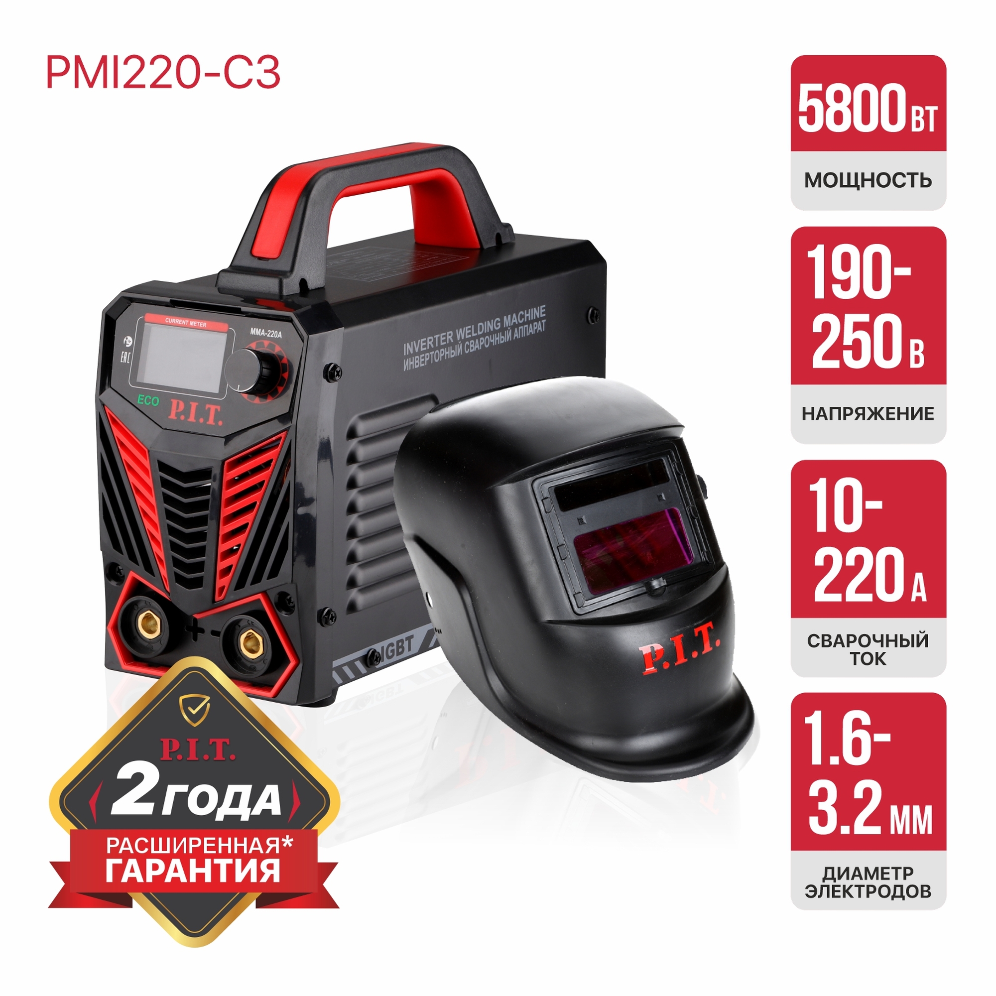 Инверторный сварочный аппарат PMI220-C3 предназначен для ручной дуговой сварки плавким покрытым электродом (ММА).