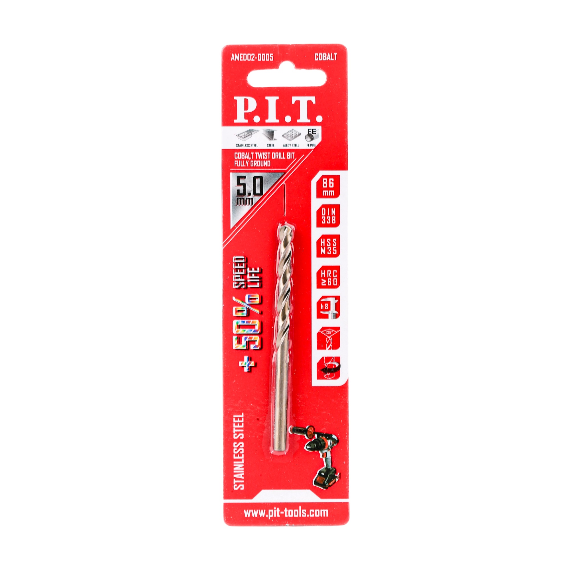 Высокое содержание кобальта 5% и титановое покрытие придают сверлам дополнительную твердость, износостойкость и устойчивость к высоким температурам.