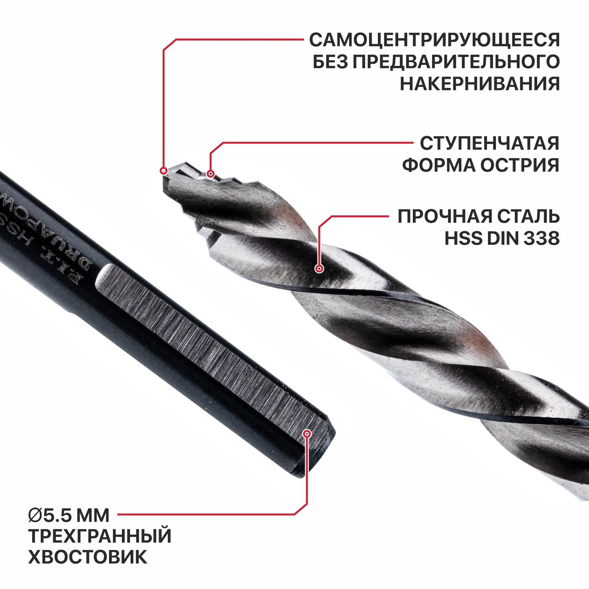 ● Ступенчатая форма острия для высокой производительности● Самоцентрирующееся без предварительного накернивания