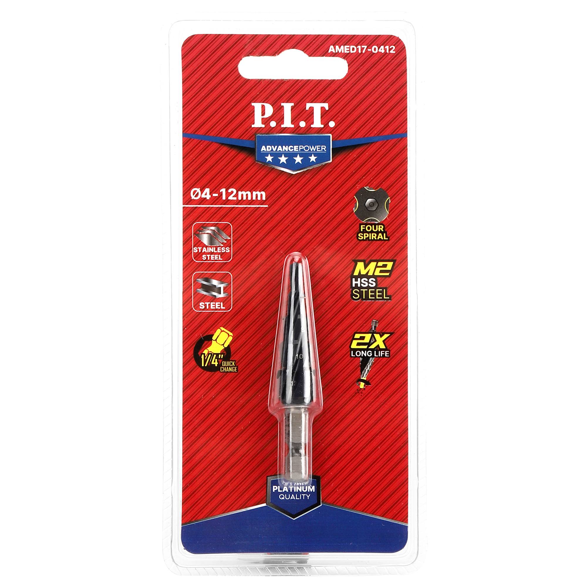 Сверло ступенчатое по металлу AMED17-0412 предназначено для сверления отверстий в черных металлах, нержавеющей стали, алюминии, меди и других металлах, а также в дереве и пластике.