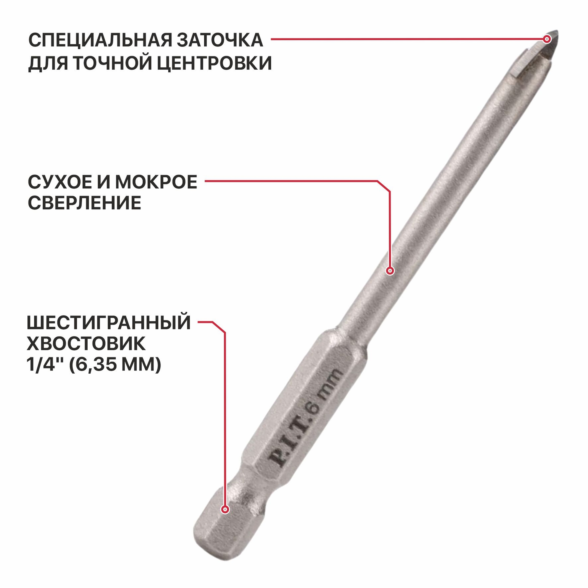 для сверления отверстий в стекле и керамике. *фотография носит информационный характер, внешний вид товара и упаковки может отличаться|