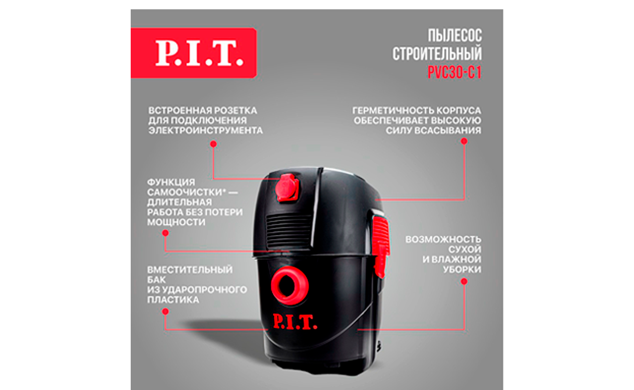 Строительный пылесос PVC30-C1 для уборки помещений после проведения ремонтных, производственных или строительных работ. Подходит для удаления пыли, опилок, стружки, окалины и иного строительного мусора. Мощный, производительный и компактный пылесос обеспечит чистоту дома, на рабочей или производственной площадке, в гараже, на дачном участке.