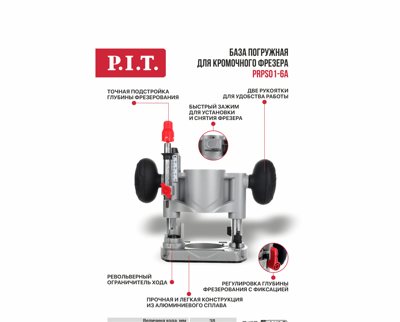 ● Прочная и легкая конструкция из алюминиевого сплава● Регулировка глубины фрезерования с фиксацией