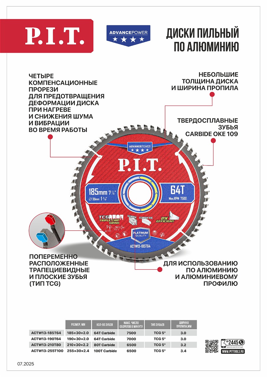 Новинка - ассортимент дисков пильных по алюминию P.I.T. ADVANCE!