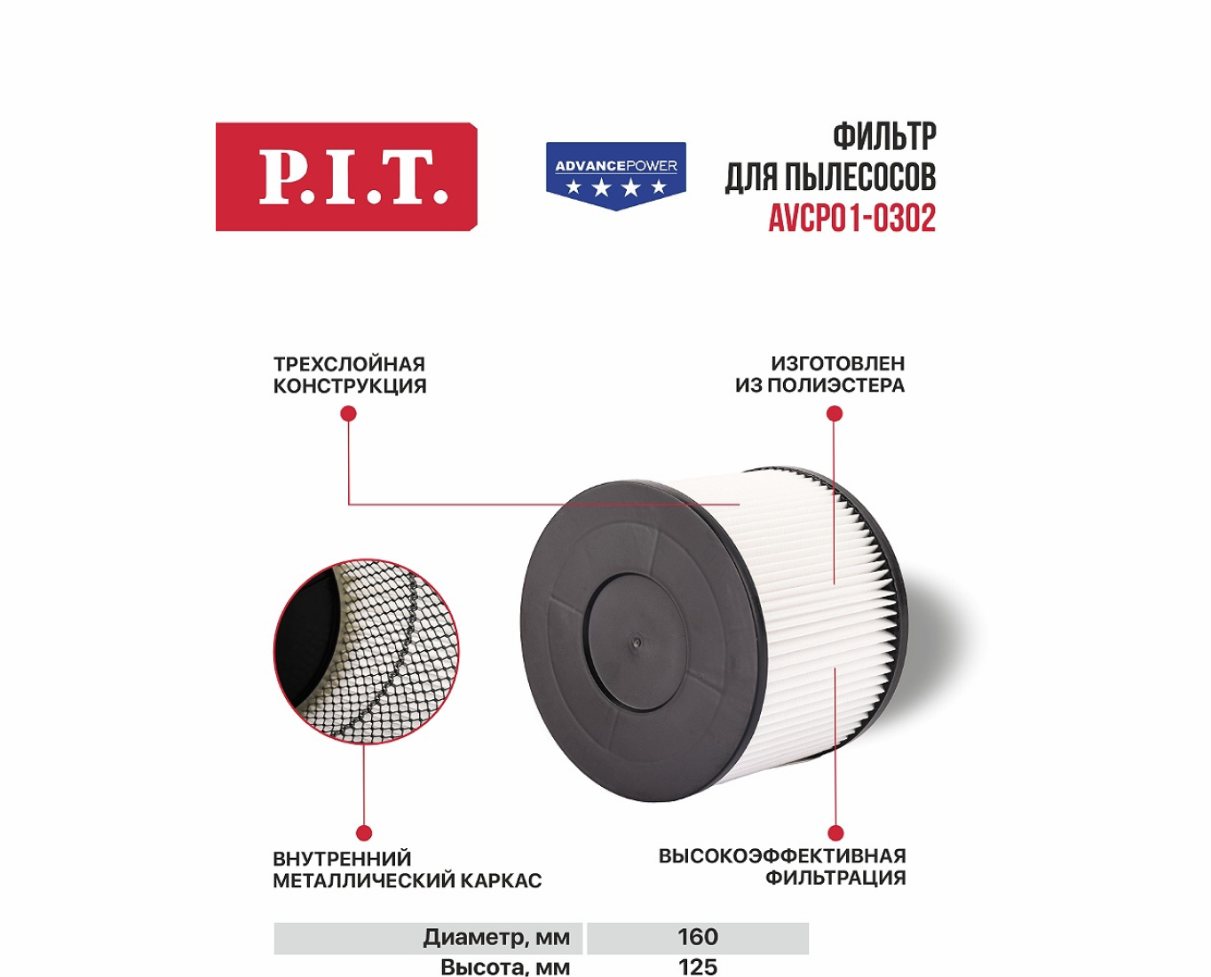 Новинка - сменный фильтр серии P.I.T. ADVANCE для пылесосов Ø160х125мм!