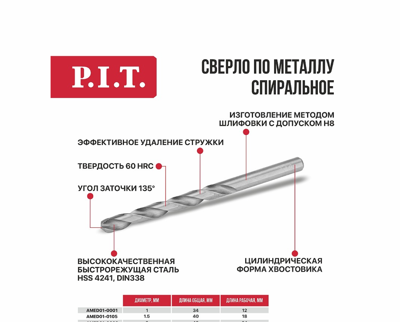 Сверло по металлу P.I.T. 15x169мм(AMED01-0015)