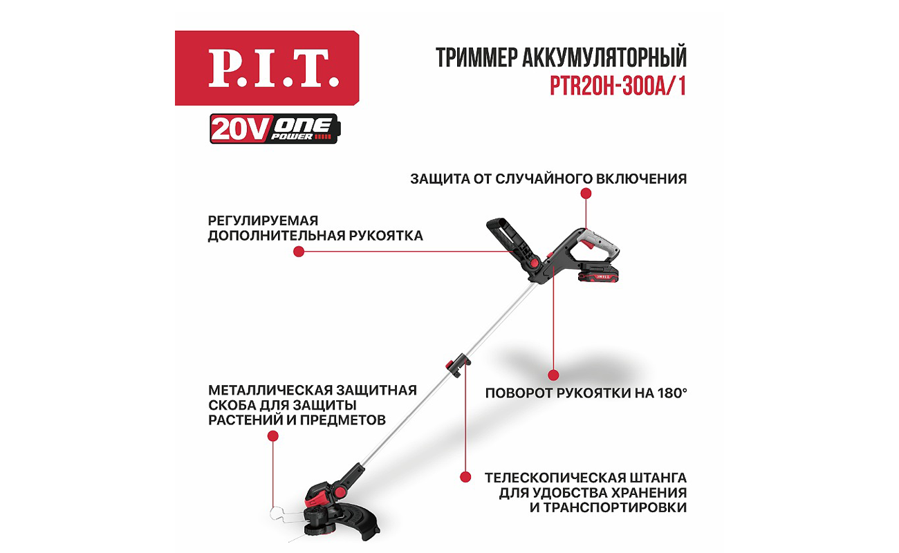 Аккумуляторный триммер PTR20H-300A/1 входит в семейство инструментов на единой аккумуляторной системе OnePower20V. К инструменту подходят все аккумуляторы и зарядные устройства серии OnePower20V.