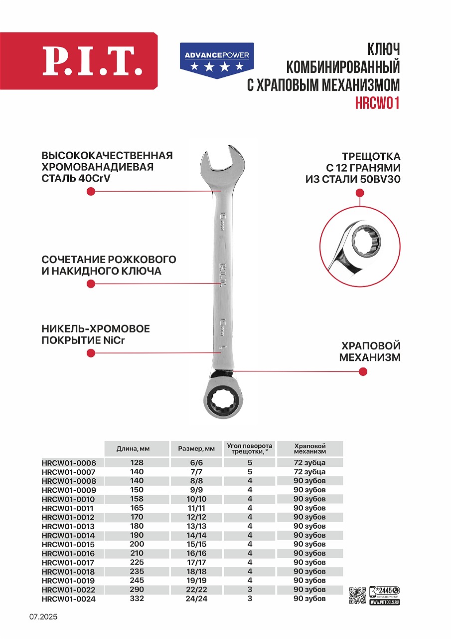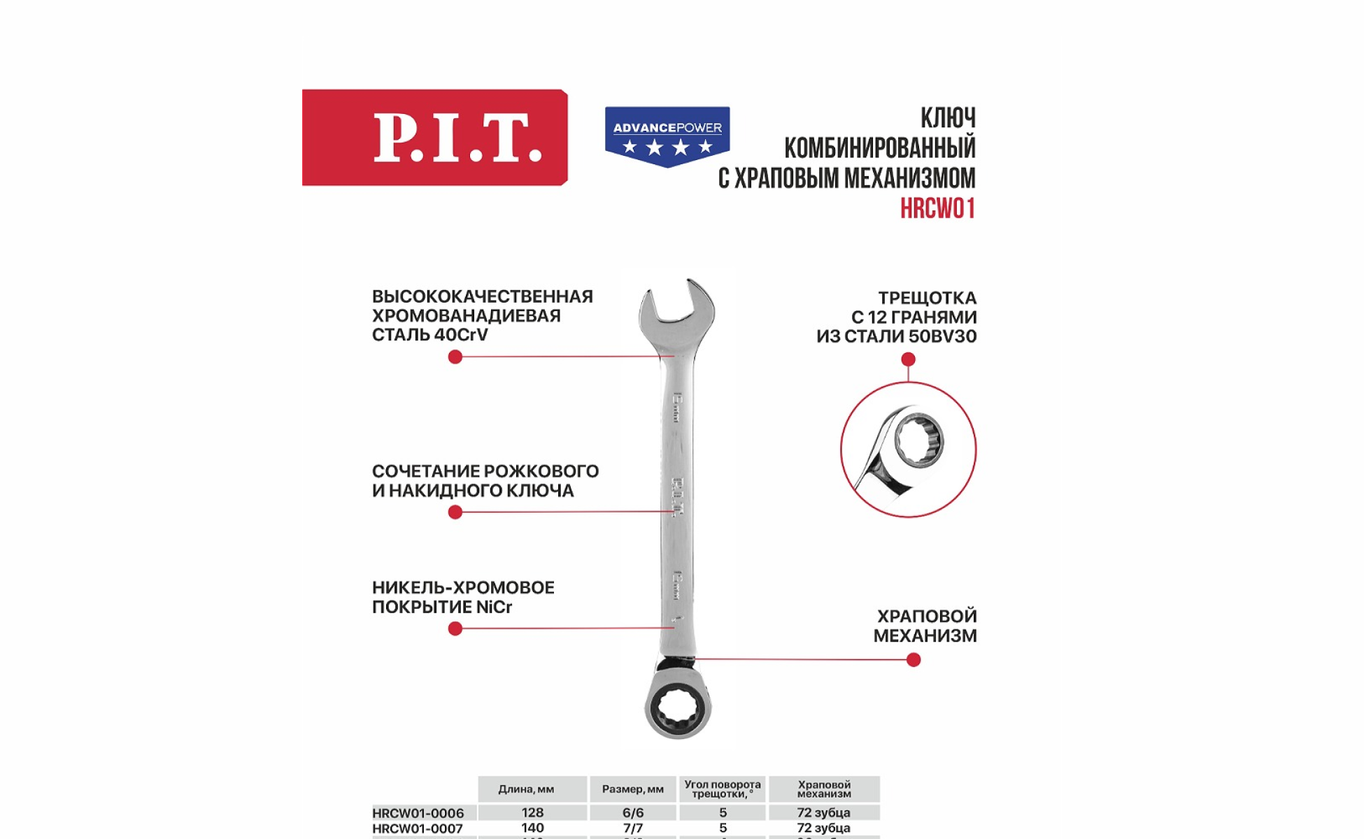 Новинки - ассортимент ключей комбинированных с храповым механизмом P.I.T. ADVANCE!